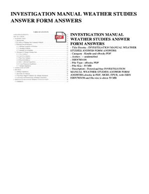 We all know that reading Answers To Weather Studies Investigation Manual is beneficial, because we could get enough detailed information online in the resources. Technology has developed, and reading Answers To Weather Studies Investigation Manual books could be far easier and easier. We could read books on the mobile, tablets and Kindle, etc. Hence, there are numerous books coming into PDF format.